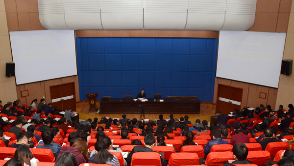11月27日,省專家學者宣講團黨的十九大精神示范宣講報告會在我校圖書館二樓報告廳舉行。陜西省社科聯(lián)黨組書記、常務副主席李穎科教授為師生作了題為《堅定文化自信,努力推動社會主義文化繁榮興盛》的專題報告。校領(lǐng)導龍治剛、王思懷、魏書堂、彭虎軍、劉寶盈、劉勇出席報告會,全校副科級以上領(lǐng)導干部、副高級職稱以上教師、青馬班學員等師生近500人聆聽了報告。報告會由黨委書記龍治剛主持。