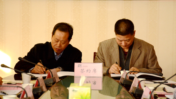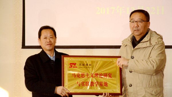 在與會(huì)人員見證下,范新會(huì)與程修華在合作共建協(xié)議上簽字。張崗嶺、龍治剛分別為我校和市委黨校授牌。