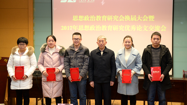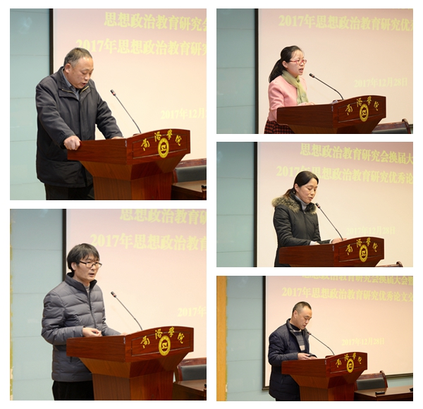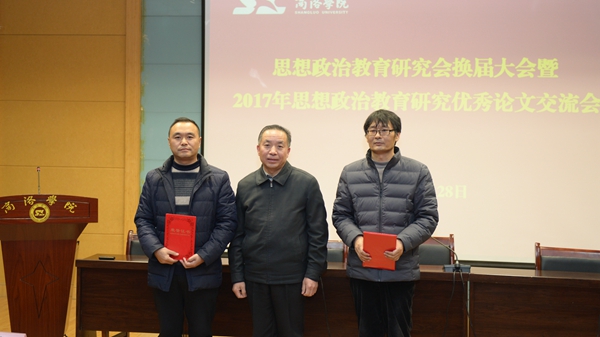 會(huì)議表彰了2017年思想政治教育研究?jī)?yōu)秀論文。王思懷、彭虎軍、左曉民分別為獲得特等獎(jiǎng)、一等獎(jiǎng)、二等獎(jiǎng)的論文作者頒發(fā)了榮譽(yù)證書(shū)。