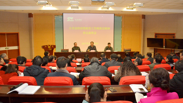 12月28日下午,我校召開會議,傳達學習12月26日召開的全省加強和改進高校思想政治工作座談會精神,安排部署我校貫徹落實工作。校領導龍治剛、范新會、王思懷、魏書堂、彭虎軍、劉寶盈出席會議,各部門、院部黨政負責人,第二屆思想政治教育研究會理事、全體輔導員、教師代表參加會議。紀委書記王思懷主持會議。