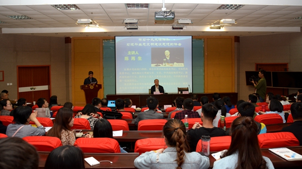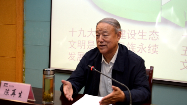 陳再生從建設新時代生態(tài)文明,要認真學習深刻領會習近平關于中國特色生態(tài)文明建設的重要戰(zhàn)略思想;要明確“美麗中國”是社會文明形態(tài)演變進步的更高要求;要明確生態(tài)文明的本質(zhì)內(nèi)涵和要求;要明確認識生態(tài)文明建設的重大意義;要明確堅持綠色發(fā)展是發(fā)展觀的一場深刻革命;要把生態(tài)建設融入經(jīng)濟、政治、文化、社會建設各方面和全過程;要堅持以人民為中心,向人民提供公共生態(tài)產(chǎn)品;要不斷完善制度機制和政策法律;要積極參與國際合作,共建全球良好的生態(tài)環(huán)境九個方面為師生做了一場深刻而生動的報告。他在報告中指出,新時代生態(tài)文明建設的重點任務是:推動形成綠色發(fā)展方式、切實解決突出環(huán)境問題、加大生態(tài)系統(tǒng)保護力度、深化生態(tài)環(huán)保體制機制改革。他強調(diào),我們要積極貫徹落實習近平總書記在黨的十九大報告中提出的“加快生態(tài)文明體制改革、建設美麗中國”的重要精神,從身邊的小事做起,堅持綠色發(fā)展道路,堅持人與自然和諧相處。