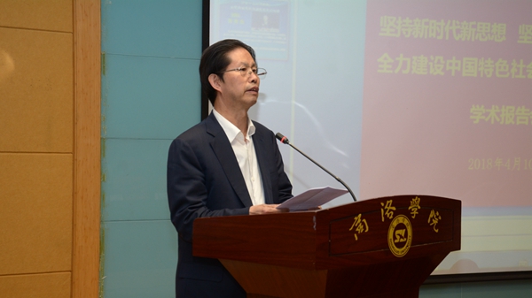 4月10日,陜西省決策咨詢委員會副主任、省人大常委會原副主任、省生態(tài)文明建設促進會名譽會長陳再生來我校作《堅持新時代新思想 堅定綠色發(fā)展道路 全力建設中國特色社會主義生態(tài)文明》主題學術報告。我校黨委書記龍治剛、校長范新會,陜西省人大常委會農(nóng)工委原副主任、省生態(tài)文明建設促進會顧問周樹紅,省生態(tài)文明建設促進會副秘書長張社柱,省環(huán)保廳宣教中心副主任石磊,省生態(tài)文明建設促進會秘書長云嘉敏,商洛市決策咨詢委員會副主任、市人大常委會原副主任羅均讓,商洛市環(huán)保局副局長任云峰出席報告會。來自我校各二級學院的師生代表聆聽了報告。報告會由范新會主持。