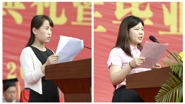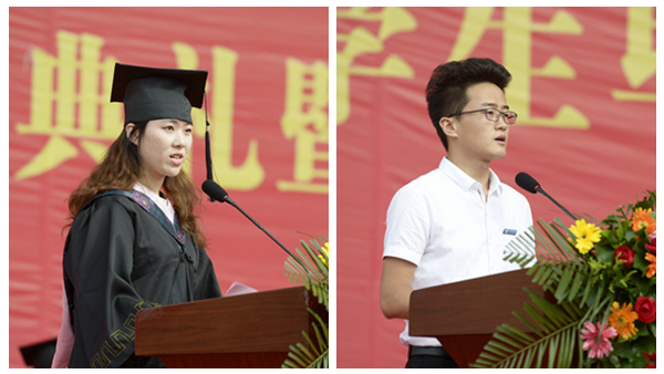 人文學院秘書學專業(yè)1401班孟丹代表2018屆畢業(yè)生,向?qū)W校領導和老師致以最崇高的敬意和最衷心的感謝!他說,我們將帶著母校的希望與囑托,去勇敢面對人生,尋求生命的光榮和夢想。未來的我們會更加勤奮,更加拼搏,未來的商院也必將更加繁榮,更加強大!