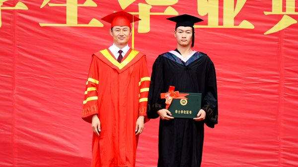 在學士學位授予儀式上,校長范新會、黨委副書記彭虎軍、副校長劉勇分別為獲得學士學位的畢業(yè)生正冠撥蘇、頒發(fā)學位證書,并與他們一 一合影留念。