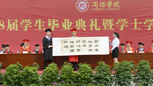 副校長劉勇宣讀了商洛學院2018屆畢業(yè)生畢業(yè)資格及學士學位授予資格審核結果、優(yōu)秀畢業(yè)生及“奉獻基層 服務邊疆”優(yōu)秀畢業(yè)生表彰決定。思政1402班常文潔等126名同學被授予“優(yōu)秀畢業(yè)生”榮譽稱號,思政1402班王聰?shù)?0名同學被評為“奉獻基層 服務邊疆”優(yōu)秀畢業(yè)生。在熱烈的掌聲中,校領導為優(yōu)秀畢業(yè)生代表頒發(fā)了證書。