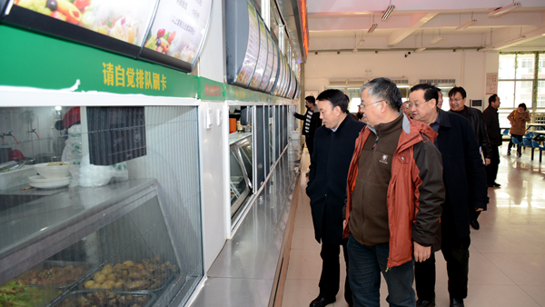 在魏書堂、彭虎軍的陪同下,袁寧一行深入學(xué)生食堂等處進(jìn)行了實(shí)地檢查。