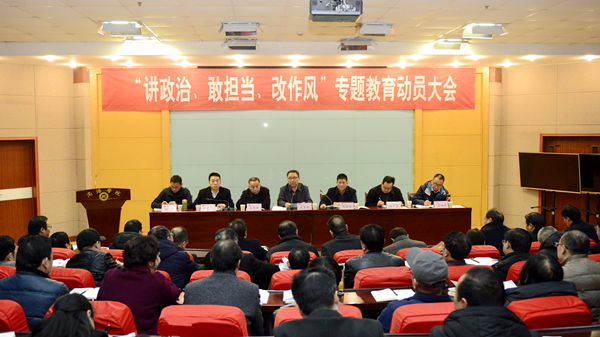 彭虎軍宣讀了《中共商洛學(xué)院委員會印發(fā)〈關(guān)于在全校處級以上干部中開展“講政治、敢擔(dān)當(dāng)、改作風(fēng)”專題教育的實施方案〉的通知》,并就我校專題教育工作進行了安排部署。