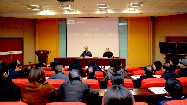 為進(jìn)一步推動“講政治、敢擔(dān)當(dāng)、改作風(fēng)”專題教育扎實(shí)有效的開展,根據(jù)中共陜西省紀(jì)委駐教育廳紀(jì)檢組的統(tǒng)一安排部署和中共商洛市委組織部《關(guān)于認(rèn)真開展〈一抓到底正風(fēng)紀(jì)〉學(xué)習(xí)討論的通知》,1月16日,我校召開“講政治、敢擔(dān)當(dāng)、改作風(fēng)”專題教育學(xué)習(xí)會。