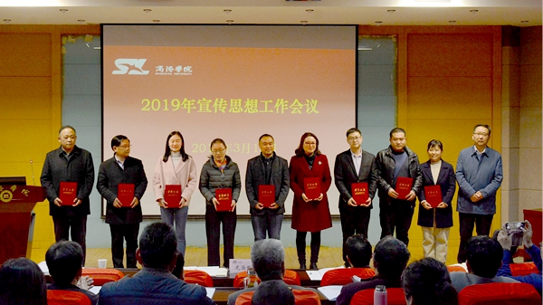 會(huì)議對(duì)2018年校思想政治教育研究會(huì)征文活動(dòng)中的10篇優(yōu)秀論文作者進(jìn)行了表彰。龍治剛為獲獎(jiǎng)作者頒發(fā)了榮譽(yù)證書,并向長(zhǎng)期以來為學(xué)校宣傳思想工作作出貢獻(xiàn)的同志們表示感謝。他指出,近年來我校宣傳思想工作以思想引領(lǐng)、文化鑄魂為方向,扎實(shí)推進(jìn)各項(xiàng)工作,取得了顯著成效,重視宣傳思想工作的氛圍日益濃厚,統(tǒng)籌協(xié)調(diào)、齊抓共管的大宣傳格局逐步形成,宣傳思想工作統(tǒng)一思想、凝心聚力的作用也得以顯示。但我們?nèi)砸_認(rèn)識(shí)到新形勢(shì)下高校宣傳思想工作面臨的意識(shí)形態(tài)領(lǐng)域斗爭(zhēng)更趨復(fù)雜、新媒體環(huán)境中信息監(jiān)管和控制難度增大等時(shí)代考驗(yàn)和現(xiàn)實(shí)壓力。