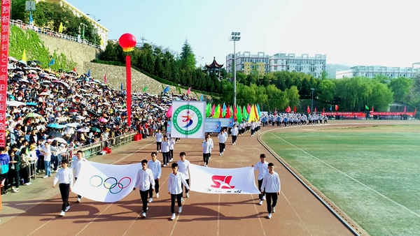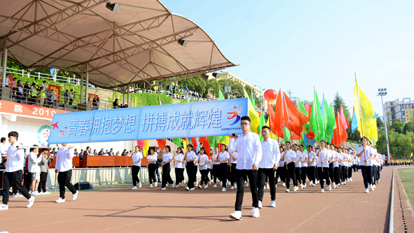 4月18日上午,風(fēng)晴日朗、天高云淡,體育場(chǎng)上彩旗招展、熱鬧非凡,我校2019年田徑運(yùn)動(dòng)會(huì)正式開幕。黨委書記龍治剛、校長(zhǎng)范新會(huì)、紀(jì)委書記王思懷、副校長(zhǎng)魏書堂、黨委副書記彭虎軍、副校長(zhǎng)劉寶盈,各二級(jí)教學(xué)單位黨政負(fù)責(zé)人和各職能部門負(fù)責(zé)人出席開幕式,與全校師生共同觀看了開幕式文體表演。