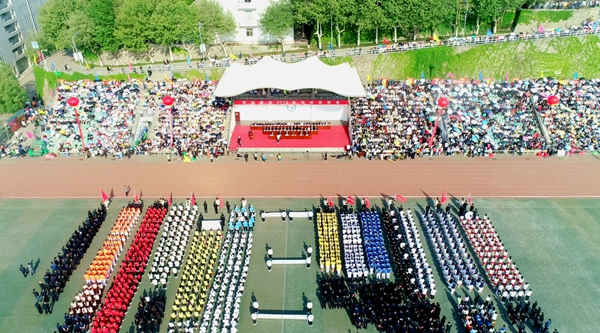 文體表演尾聲,全場(chǎng)師生揮舞著手中小紅旗,共同唱響《我和我的祖國(guó)》,齊聲高喊“祖國(guó),我愛你”,把現(xiàn)場(chǎng)氣氛推向高潮。