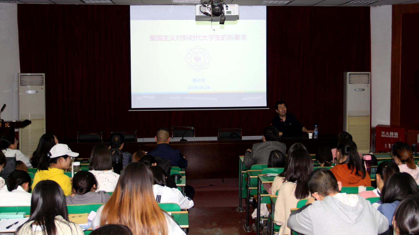 為慶祝中華人民共和國成立70周年,按照我校黨委關(guān)于開展慶祝新中國成立70周年主題教育活動的安排,9月24日下午,我校馬克思主義學(xué)院舉辦了“道德講堂”暨愛國主義專題報告會,特邀西安電子科技大學(xué)馬克思主義學(xué)院黨委書記夏永林教授為全院師生作了專題報告。報告會由馬克思主義學(xué)院黨總支書記蔣正治主持。