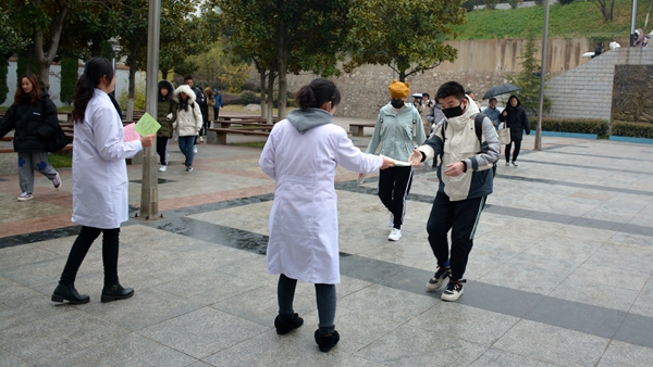 12月1日是第32個“世界艾滋病日”,今年的宣傳主題是“社區(qū)動員同防艾,健康中國我行動”。11月29日,在第32個“世界艾滋病日”來臨之際,我校醫(yī)務(wù)室聯(lián)合校志愿者協(xié)會舉行艾滋病防控宣傳活動?;顒又?,我校醫(yī)務(wù)室工作人員為師生宣傳普及艾滋病防控的基本知識并發(fā)放宣傳彩頁3000余份、防艾健康教育處方1000余份、宣傳海報300余張。