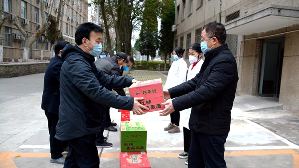 連日來(lái),我校教職工上下一心、堅(jiān)守陣地,落實(shí)落細(xì)各項(xiàng)防控措施,全力以赴做好疫情防控工作,取得了良好的工作成效和社會(huì)示范效應(yīng)。為此,陜西省教科文衛(wèi)體工會(huì)還專(zhuān)門(mén)給我校疫情防控工作撥付了補(bǔ)助金。2月20日,校黨委副書(shū)記彭虎軍、副校長(zhǎng)王新軍帶著省教科文衛(wèi)體工會(huì)的關(guān)心和支持,帶著校黨委、校工會(huì)、全體師生的關(guān)懷和牽掛,走訪慰問(wèn)了堅(jiān)守在學(xué)??挂咭痪€的工作人員,把牛奶、八寶粥、方便面等慰問(wèn)品送到他們身邊,感謝他們?yōu)橐咔榉揽刈鞒龅呢暙I(xiàn),鼓勵(lì)他們堅(jiān)定信心、強(qiáng)化責(zé)任,以細(xì)之又細(xì)、實(shí)之又實(shí)的作風(fēng)堅(jiān)決打贏這場(chǎng)疫情防控阻擊戰(zhàn),叮囑他們?cè)诼穆毐M責(zé)的同時(shí)務(wù)必加強(qiáng)個(gè)人防護(hù),緩解心理壓力,避免疲勞作戰(zhàn),確保身心健康安全。