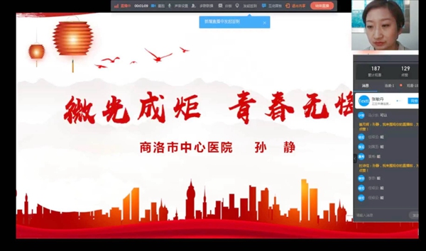 為紀(jì)念南丁格爾誕辰200周年暨慶祝第109個“5.12”國際護(hù)士節(jié),健康管理學(xué)院于5月11日晚,依托釘釘平臺,組織全院師生開展了以“講述抗疫英雄故事,傳承南丁格爾精神”為主題的線上紀(jì)念活動。活動特邀陜西省第一批援鄂醫(yī)護(hù)人員、商洛市中心醫(yī)院重癥醫(yī)學(xué)科護(hù)士長孫靜為全院師生做了“微光成炬 青春無悔”的報(bào)告。健康管理學(xué)院黨政負(fù)責(zé)人以及學(xué)院全體師生參加了本次活動。