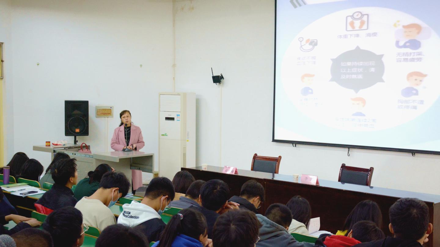 為了加強學(xué)校傳染病防控工作,切實保護廣大師生身心健康,11月18日,商洛市中心醫(yī)院感染二科主任醫(yī)師李藝受邀來校為師生作傳染病防治知識講座。校醫(yī)院醫(yī)護人員、各院輔導(dǎo)員和學(xué)生代表共計200余人聆聽了講座。