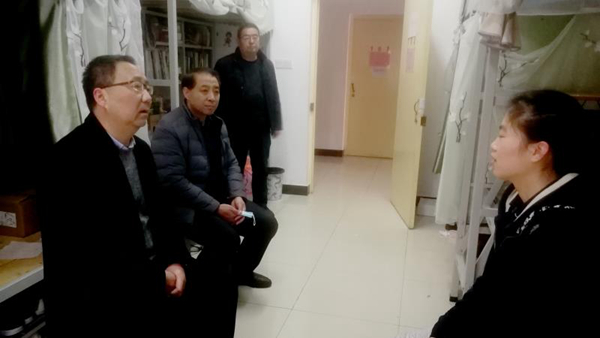 1月27日,校黨委書記龍治剛、副校長王新軍在黨委辦公室·院長辦公室和后勤保障處相關負責人的陪同下,前往學生宿舍看望慰問寒假期間因疫情滯留在校的2名(石家莊籍、邢臺籍)學生。
