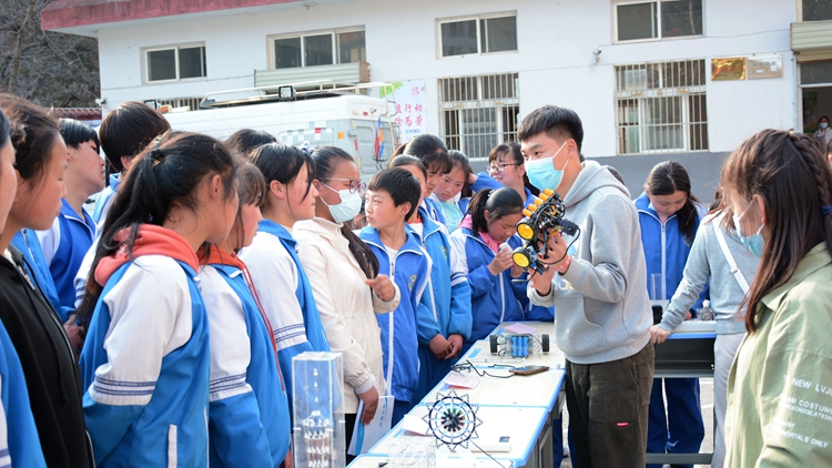 在活動現(xiàn)場,科技處副處長郭耀東代表學(xué)校向寺坪鎮(zhèn)師生捐贈了200本由我校人文學(xué)院創(chuàng)辦的文學(xué)刊物《商洛文苑》。我?!傲鲃涌萍拣^”成員現(xiàn)場進行了“科技展品體驗”、“趣味實驗展演”“航模飛行展示”等科普展演活動。