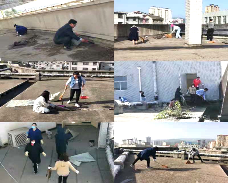 在圖書館黨政負(fù)責(zé)人的帶領(lǐng)下,40余名館員手持勞動(dòng)工具,全面清理了圖書樓樓頂堆積已久的磚頭、水泥塊、廢棄建筑材料,鏟走下水口附近雨水沖積的淤泥、垃圾,疏通了排水管道,清理了三十多立方垃圾,為師生營(yíng)造了良好的閱讀及學(xué)習(xí)環(huán)境。