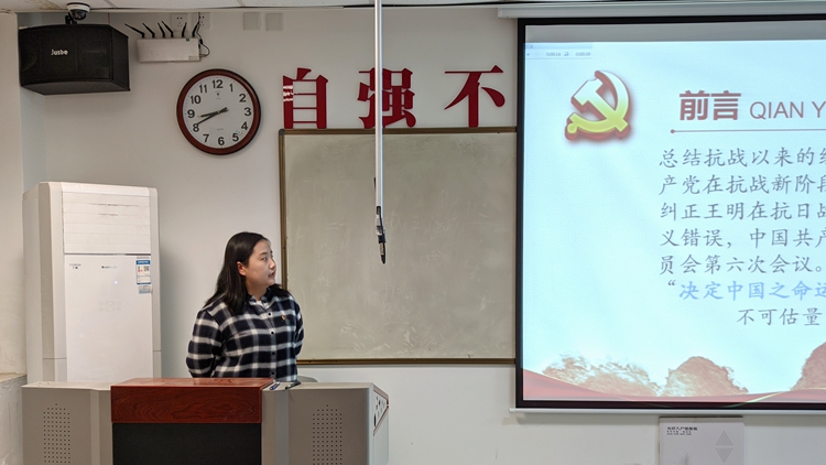 比賽過程中,由馬克思主義學(xué)院黨總支3個黨支部推薦的8名師生黨員同臺競技,他們緊緊圍繞“知黨史 頌黨恩 不忘初心跟黨走”的主題展開講述,向大家展示了他們精心準(zhǔn)備的微黨課作品。學(xué)生王宇杰以“信仰為根,終成蒼莽”為主題,講述了紅軍艱苦卓絕斗爭,帶領(lǐng)大家一同回憶了崢嶸歲月里共產(chǎn)黨人的堅守;教師李娜娜用歌曲《歌唱祖國》作鋪墊,圖文并茂,生動講述了歌曲背后的故事;教師高珊珊以“中國共產(chǎn)黨的初心與使命”為題深刻展現(xiàn)了什么叫做心中有信仰、腳下有力量,激勵大家要始終不忘初心學(xué)黨史,砥礪前行擔(dān)使命;教師高婷婷將《國際歌》在中國的落地和傳播作為線索,講述了中國共產(chǎn)黨的百年歷史發(fā)展;教師安梅重溫了黨帶領(lǐng)人民英勇戰(zhàn)“疫”的故事,以此為切入點講述了加強(qiáng)黨的質(zhì)量建設(shè)的重要性;教師劉健以“農(nóng)業(yè)”為主線,回顧了黨領(lǐng)導(dǎo)下的我國的農(nóng)業(yè)體制改革以及如何轉(zhuǎn)化“把你的變成大家的”的意愿;學(xué)生蘇銀瑞稱“紅船精神”是給青年人的禮物,并為師生詳細(xì)解讀了“紅船精神”的深刻內(nèi)涵及相關(guān)成就;學(xué)生令淑娟從橋兒溝的紅色教堂講起,深入剖析“決定中國之命運”的六屆六中全會。8位參賽選手用聲情并茂的演繹,深入淺出的語言,向師生講述了黨的發(fā)展歷史,闡釋了黨的初心與使命,贏得了陣陣熱烈的掌聲。