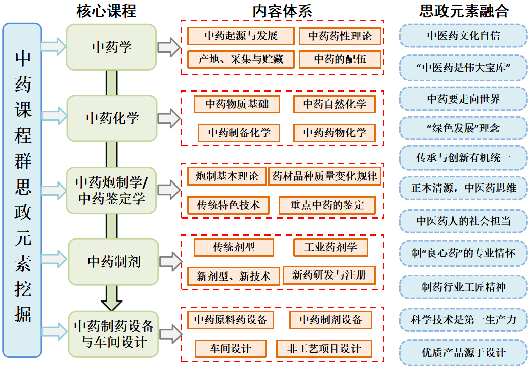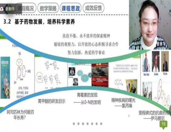 發(fā)掘思政育人元素,強化課程思政頂層設(shè)計。生物學(xué)院教工第二黨支部組建了制藥工程教學(xué)團隊,聚焦中藥學(xué)課程專業(yè)特色和制藥工程專業(yè)的育人目標,提出“守正創(chuàng)新,立德樹人”的課程思政建設(shè)理念。緊扣立德樹人根本、強化傳承創(chuàng)新目標、抓牢質(zhì)量提升主線、抓好師資隊伍建設(shè),為中藥學(xué)課程思政教學(xué)奠定基礎(chǔ)。堅持把培育和踐行社會主義核心價值觀貫穿師生專業(yè)課實踐教學(xué)、社會實踐活動、創(chuàng)新創(chuàng)業(yè)教育、志愿服務(wù)等過程,增強思想引領(lǐng)和價值觀塑造的實效性。將專業(yè)課與產(chǎn)業(yè)鏈銜接,推進對接產(chǎn)業(yè)鏈的專業(yè)思政實現(xiàn)路徑,培養(yǎng)學(xué)生愛崗敬業(yè)與責(zé)任擔(dān)當(dāng),弘揚愛國精神、厚植家國情懷。構(gòu)建全新的立體化實踐教學(xué)體系,實施專業(yè)課程思政,落實全員育人、全程育人、全方位育人。