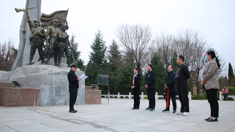 梨花風起正清明,萬條千縷綠相迎。為緬懷革命先烈、回顧黨史光輝歷程、利用紅色資源開展革命傳統(tǒng)教育傳承紅色基因、推進黨史學習教育走深走實,3月29日下午,在支部書記付軍昌同志的帶領(lǐng)下,工會·信息化建設(shè)與管理處黨支部黨員們帶著滿腔的敬意,來到商洛市烈士陵園和紅軍廣場開展清明節(jié)烈士祭掃暨“緬懷先烈、銘記黨史、堅定初心”主題黨日活動。