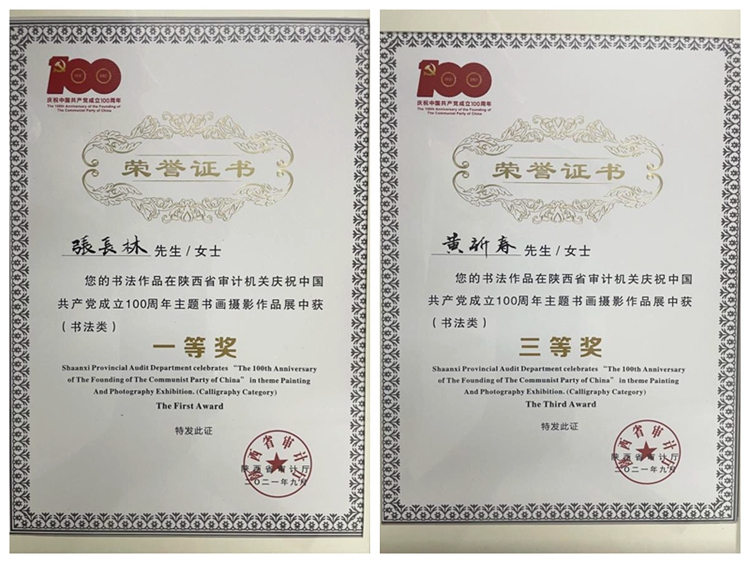 為慶祝中國共產(chǎn)黨成立100周年,陜西省審計廳舉辦了以“奮斗百年路,啟航新征程”為主題的書畫攝影展,我校參展的書畫作品在400多幅作品中喜獲佳績。其中,藝術(shù)學(xué)院張長林老師的書法作品榮獲一等獎,黃新春書法作品榮獲三等獎,審計處榮獲優(yōu)秀組織獎。