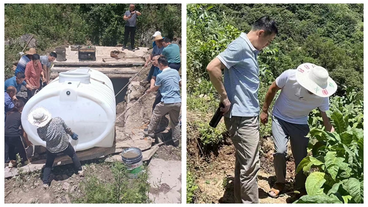 劉勇首先查看了我校援建的蓄水池改造工程,該工程建成后可滿足11戶60余人飲水及煙田灌溉,切實(shí)解決原飲水設(shè)施年久失修、雨期雨水倒灌、蓄水池漏水、水質(zhì)污染等問題。