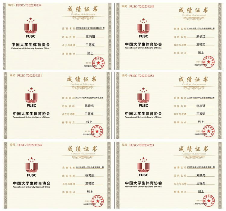 近日,由中國(guó)大學(xué)生體育協(xié)會(huì)主辦,中國(guó)大學(xué)生體育協(xié)會(huì)跆拳道分會(huì)執(zhí)行,中國(guó)地質(zhì)大學(xué)(北京)承辦的2022年中國(guó)大學(xué)生跆拳道舞線(xiàn)上賽圓滿(mǎn)落幕。經(jīng)過(guò)與來(lái)自廈門(mén)大學(xué)、北京交通大學(xué)、中國(guó)地質(zhì)大學(xué)、西安電子科技大學(xué)、成都體育學(xué)院等全國(guó)47所高校,54支代表隊(duì)激烈比拼,我校獲三等獎(jiǎng)。