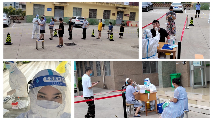 疫情發(fā)生以來,黨委辦公室、后勤保障處主要負責人和相關工作人員日夜堅守在工作崗位上,確保各類信息暢通、防控工作落實到位、校內師生生活保障無憂。校醫(yī)院任秀梅、阮佳、童婭等工作人員克服家庭困難,每日為校內700余名師生員工和家屬進行核酸檢測采樣。每個核酸采樣臺每次需要3名志愿者,協(xié)助核酸檢測掃描和消毒工作。黨委辦公室和人事處就近抽調校內人員,廣大黨員職工踴躍報名,教職工張可可、李志超、王旭紅、李先勇等60余人分批輪崗,確保每日全員核酸檢測采樣工作順利完成。今年暑期天氣酷熱,協(xié)助核酸檢測的志愿者每天清晨5點半穿好防護服,一直工作到上午11點。在3、4個小時的高強度工作后,全身都被汗水浸濕。建工學院教師丁少男博士做完志愿工作后,在朋友圈中感慨地表示,“對于很多人來說,只是簡單的排隊掃碼,做一次核酸,對志愿者和檢測人員來說,他們要經(jīng)過千百次的重復!單純的掃碼都可以讓全身衣服濕透。力所能及做一點自己的工作,希望這座城早點迎來勝利的曙光!”