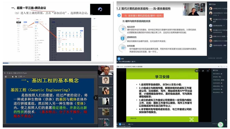 8月29日,我校2022-2023學(xué)年度第一學(xué)期正式開始線上教學(xué)。全校師生按照“延期不停教、延期不停學(xué)”要求,通過超星學(xué)習(xí)通、釘釘、雨課堂、微信、QQ群、騰訊會議等在線教學(xué)平臺開展教學(xué),全校279名主講教師在線講授422門次課程,在線上課學(xué)生22749人次,線上教學(xué)運行整體平穩(wěn)有序。