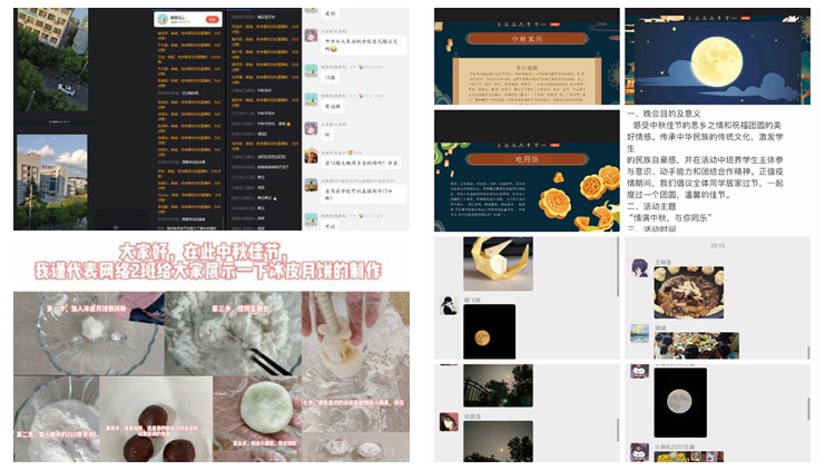 數(shù)計(jì)學(xué)院開(kāi)展了線上猜燈謎、賞明月、講中秋傳統(tǒng)故事等活動(dòng)。有的新生通過(guò)視頻等方式展示了自己動(dòng)手制作月餅的全過(guò)程,學(xué)院教師通過(guò)VR帶領(lǐng)新生“云端逛校園”,向?qū)W生展示我校全貌。