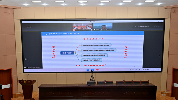 劉寶盈向與會者提出了三點要求。一是要有責(zé)任意識,增強(qiáng)評建工作自覺性;二是要把握內(nèi)涵,對標(biāo)開展評建工作,要即知即改,及早自查自糾持續(xù)改進(jìn),統(tǒng)籌部署,一體謀劃推進(jìn)日常教學(xué)和評建工作;三是全校上下要齊心協(xié)力、團(tuán)結(jié)協(xié)作,共同做好審核評估迎評工作。