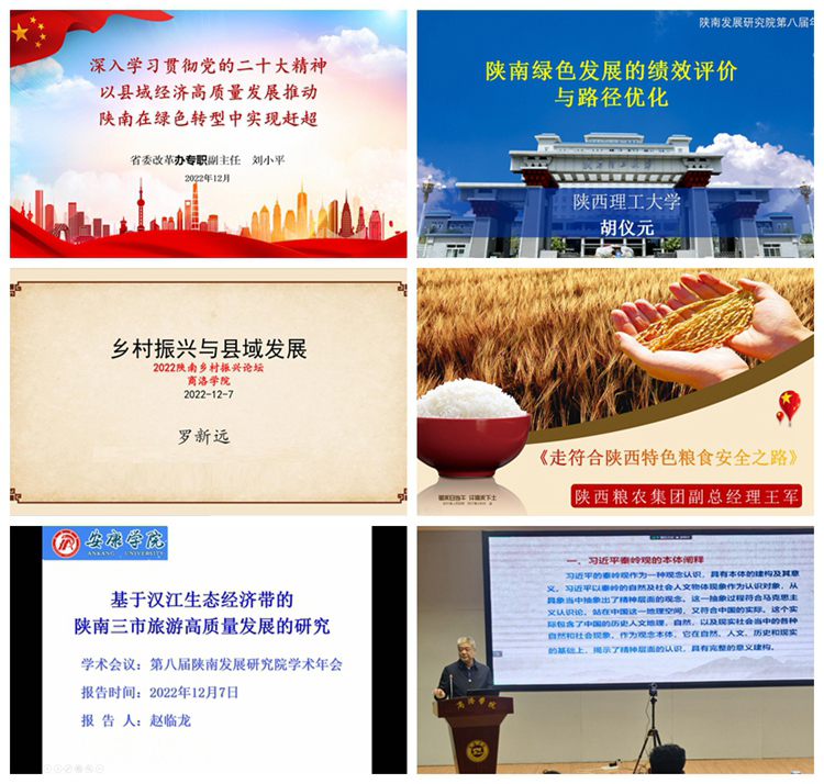 12月7日,陜南發(fā)展研究院第八屆年會(huì)暨陜西省社科聯(lián)學(xué)術(shù)研討會(huì)在我校召開。本次會(huì)議以“學(xué)習(xí)貫徹黨的二十大精神,加快發(fā)展方式綠色轉(zhuǎn)型與縣域高質(zhì)量發(fā)展”為主題。來自陜南3所高校的150余位專家學(xué)者通過線上線下相結(jié)合的方式,圍繞生態(tài)文明建設(shè)、鄉(xiāng)村振興、區(qū)域文化與旅游、融合發(fā)展等方面進(jìn)行了交流研討。