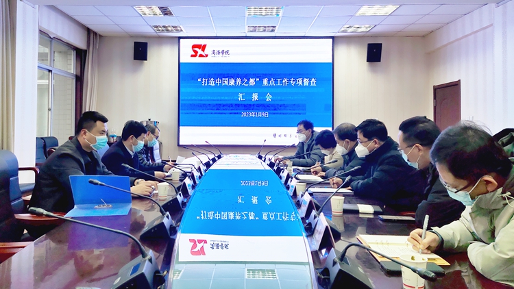 1月9日,市文旅局三級(jí)調(diào)研員胡金鑫帶領(lǐng)商洛市打造中國(guó)康養(yǎng)之都工作推進(jìn)專班督查小組來(lái)到我校,督查學(xué)校服務(wù)商洛“康養(yǎng)之都”建設(shè)重點(diǎn)工作推進(jìn)情況。副校長(zhǎng)王新軍出席匯報(bào)會(huì)。人事處、發(fā)展規(guī)劃處、科技處、生物醫(yī)藥與食品工程學(xué)院、健康管理學(xué)院等單位負(fù)責(zé)人參加會(huì)議。