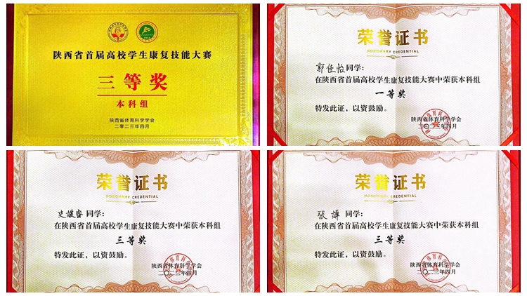3月31至4月1日,由陜西省體育科學(xué)學(xué)會(huì)、西安體育學(xué)院共同主辦的“陜西省首屆高校學(xué)生康復(fù)技能大賽”在西安舉行,來(lái)自全省11所本科院校和4所高職院校的15支代表隊(duì)參加了比賽。我校健康管理學(xué)院康復(fù)治療專業(yè)郭佳怡、史媛睿、張嬋3名同學(xué)組隊(duì)參加了大賽。經(jīng)過(guò)激烈角逐,我校代表隊(duì)取得大賽本科組團(tuán)體三等獎(jiǎng),個(gè)人一等獎(jiǎng)1項(xiàng)、三等獎(jiǎng)2項(xiàng)的好成績(jī)。