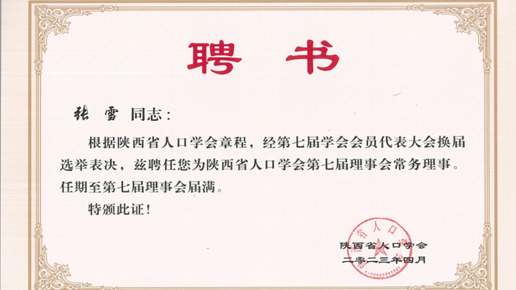 我校張雪副教授當(dāng)選陜西省人口學(xué)會(huì)常務(wù)理事