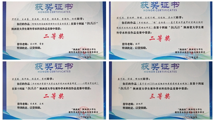 5月20日,由團省委、省委教育工委、省科技廳、省科協(xié)、省社會科學院、省學聯(lián)、西咸新區(qū)管委會共同主辦,長安大學承辦的第十四屆“挑戰(zhàn)杯”陜汽集團陜西省大學生課外學術(shù)科技作品競賽閉幕式暨頒獎儀式在長安大學舉行。我校在本次大賽中榮獲佳績,其中二等獎3項,三等獎1項。