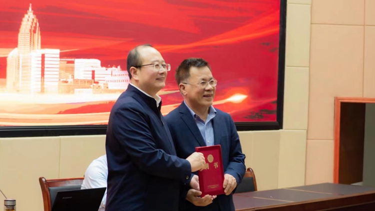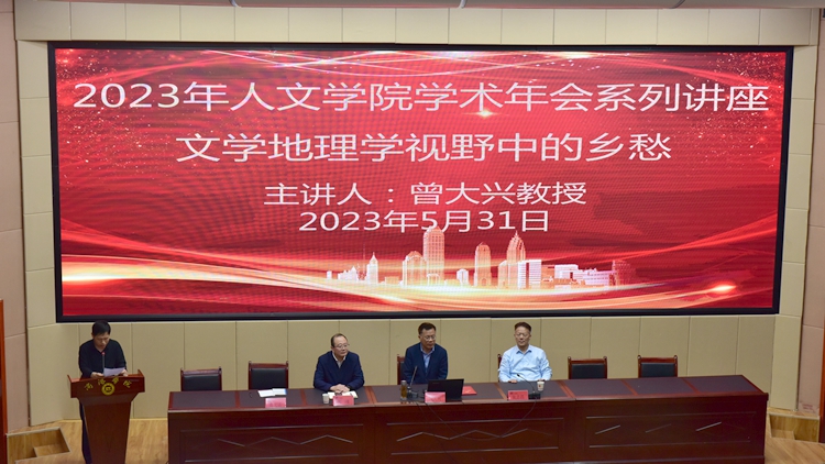 5月31日下午,中國文學地理學會會長、廣州大學文學地理學研究院名譽院長曾大興教授應邀來我校作學術報告,并受聘為我校兼職教授。校黨委書記張志昌出席報告會并講話。副校長郭瑾代表學校向曾大興教授頒發(fā)聘書。商洛市作協(xié)、評協(xié)成員代表,人文學院黨政負責人及師生代表共300余人聽取報告。