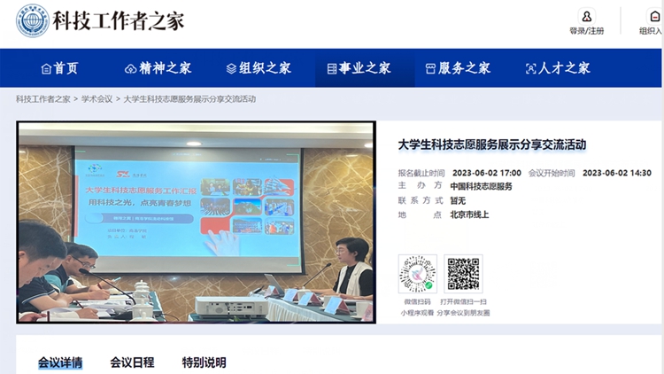 為充分展示大學(xué)生科技志愿服務(wù)工作典型成效經(jīng)驗(yàn),推動(dòng)相關(guān)工作高質(zhì)量發(fā)展,6月2日,由中國(guó)科學(xué)技術(shù)協(xié)會(huì)主辦的全國(guó)大學(xué)生科技志愿服務(wù)交流展示活動(dòng)在北京舉行。中國(guó)科學(xué)技術(shù)協(xié)會(huì)宣傳文化部部長(zhǎng)郭哲、北京師范大學(xué)民生保障研究中心主任謝瓊、全國(guó)學(xué)校共青團(tuán)研究中心常務(wù)副主任秦濤出席活動(dòng)并講話。活動(dòng)分線下交流、線上展示兩個(gè)階段進(jìn)行,我校與北京航空航天大學(xué)、哈爾濱工程大學(xué)等6所高校受邀作現(xiàn)場(chǎng)展示交流,800余所高校線上收看直播。