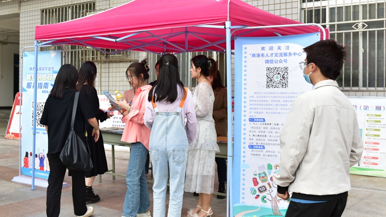 報告會結束后,廣大師生還前往商洛市人才中心在我校設置的宣傳點,詳細了解就業(yè)創(chuàng)業(yè)各項政策。