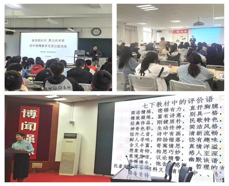 為創(chuàng)新教師專業(yè)成長新模式,充分發(fā)揮區(qū)域初中名優(yōu)骨干教師的示范引領作用,有效促進高校與基礎教育優(yōu)質資源的有機融合,提升師范生教育教學實踐能力水平,近日,我校與商洛市初級中學聯(lián)合舉辦多學科教學交流公益活動,邀請商洛市初級中學省市級三級三類骨干教師團隊,分別深入馬克思主義學院、人文學院、數學與計算機應用學院、電子信息與電氣工程學院等7個二級學院開展了20余場學科示范課、學科專題報告等活動。