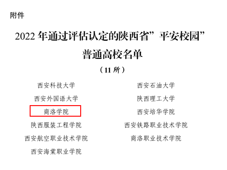 近日,中共陜西省委教育工委、陜西省教育廳印發(fā)《關(guān)于授予西安科技大學(xué)等107所學(xué)校陜西省“平安校園”稱號的決定》(陜教工函〔2023〕119號),經(jīng)專家組現(xiàn)場對標打分、集體研究,省教育廳廳務(wù)會議審議,我校繼2017年首次獲得省級“平安校園”稱號之后,再度榮獲陜西省“平安校園”榮譽稱號。