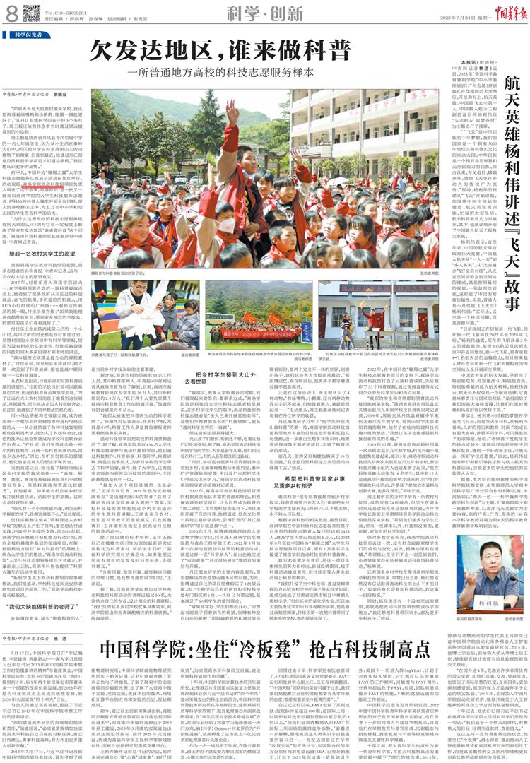 7月24日,《中國(guó)青年報(bào)》第8版以《欠發(fā)達(dá)地區(qū),誰來做科普一所普通地方高校的科技志愿服務(wù)樣本》為題,對(duì)我校流動(dòng)科技館科技志愿服務(wù)項(xiàng)目進(jìn)行了專題報(bào)道。