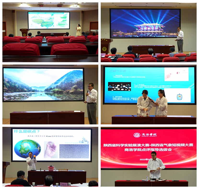參加比賽的9組隊(duì)伍分別通過(guò)現(xiàn)場(chǎng)講解、視頻展示、實(shí)驗(yàn)展演、情景劇場(chǎng)等方式展示了團(tuán)隊(duì)的科普作品。由商洛市科協(xié)科普部部長(zhǎng)陳淑萍及我校相關(guān)專(zhuān)家組成的評(píng)委分別從選題方向、受眾群體、場(chǎng)景設(shè)計(jì)、肢體語(yǔ)言、實(shí)驗(yàn)環(huán)節(jié)、講解技巧等方面進(jìn)行了點(diǎn)評(píng)與指導(dǎo)。經(jīng)過(guò)現(xiàn)場(chǎng)評(píng)議,推薦王毅夢(mèng)、屈佳、何念竹3個(gè)團(tuán)隊(duì)參加陜西省科學(xué)實(shí)驗(yàn)展演大賽;推薦房舒、張博、王緒旺3位教師參加陜西省氣象科普視頻大賽。