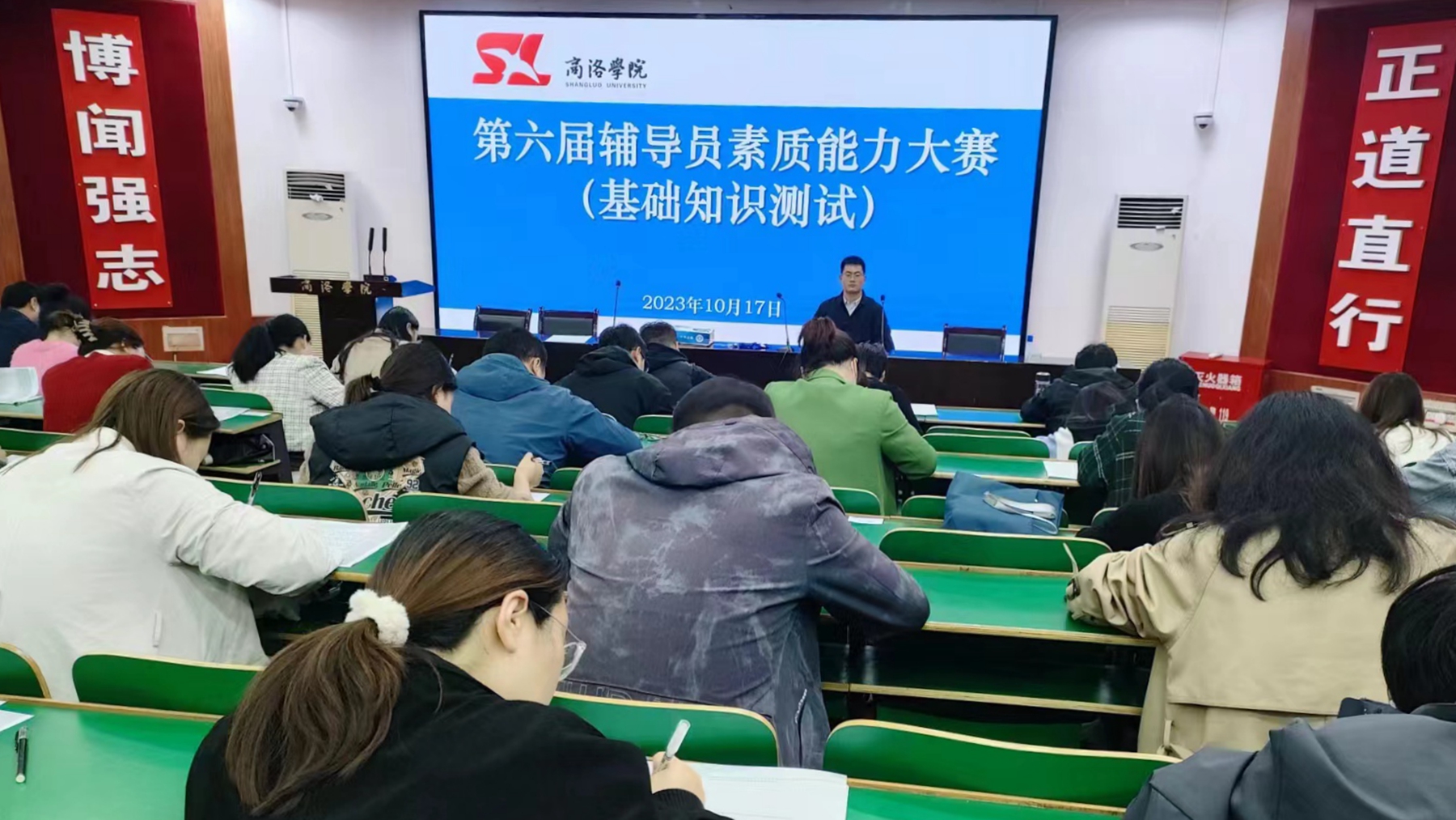 我校全體專職輔導(dǎo)員參加了基礎(chǔ)知識(shí)測試。各學(xué)院根據(jù)本學(xué)院輔導(dǎo)員綜合素質(zhì)、日常工作能力與實(shí)際表現(xiàn),擇優(yōu)推薦10名輔導(dǎo)員參加了校級(jí)決賽。