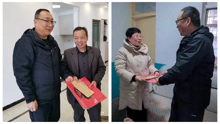 隆冬寒意濃,慰問暖人心。1月18日,副校長劉寶盈赴部分困難教職工家中,為他們送去春節(jié)慰問品和新年祝福。校工會副主席魚小強陪同慰問。
