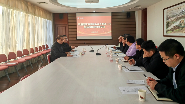 王新軍代表我校對劉波一行的到來表示歡迎,并對南京市商洛商會對我校的關心和支持表示感謝。他指出,南京市商洛商會是加強商洛籍南京商界人士同家鄉(xiāng)聯(lián)系溝通的紐帶和橋梁,為政府與企業(yè)、企業(yè)與企業(yè)之間聯(lián)絡搭建了平臺,極大地促進了寧商協(xié)作交流。他希望,商會能夠充分利用其資源優(yōu)勢,為我校牽線搭橋,拓展我校與南京企事業(yè)單位的合作領域,在產教融合、實習就業(yè)、科研平臺建設等方面爭取更多合作機會,為我校應用型人才培養(yǎng)提供更多支持,依靠寧商協(xié)作機制共同推動商洛區(qū)域科技創(chuàng)新。