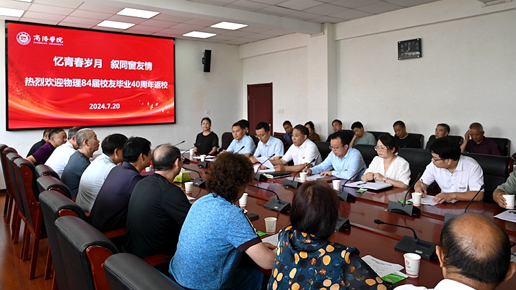 芳華四十載,難忘商院情。7月20日,我校物理84屆校友闊別40載后,從天南海北回母校團聚,重溫師生情誼,共話發(fā)展變遷。副校長王新軍陪同校友參觀校園并代表學校接受校友捐贈的牌匾。國內(nèi)合作與校友工作處、電信學院相關負責人及教師代表參加活動。座談會由電信學院黨委書記趙永平主持。