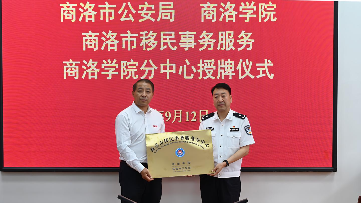 儀式上,柳禮群代表商洛市公安局為商洛市移民事務服務商洛學院分中心授牌,王新軍代表學校接牌。